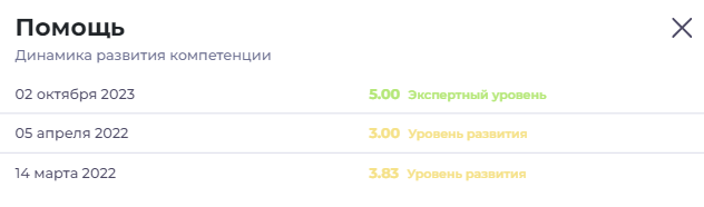 Возможность отслеживания динамики оценок по каждой компетенции и мониторинга прогресса развития вашей команды.