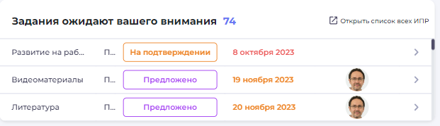 Платформа UnicPeople предлагает наглядную и понятную систему статусов и шкалу прогресса, благодаря которым можно проследить за каждым этапом процесса создания, согласования и выполнения как всего плана развития в целом, так и отдельных его заданий.
