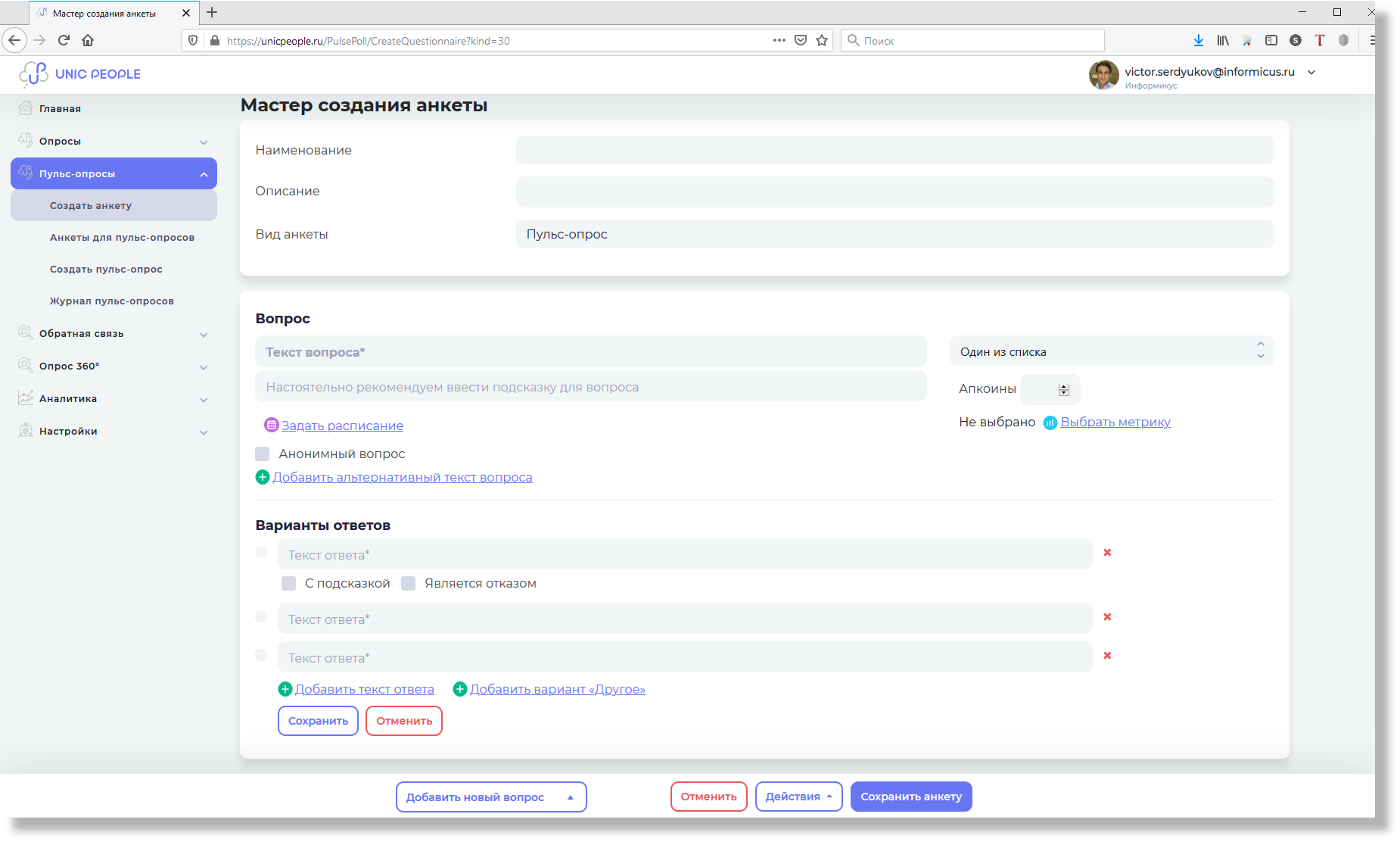 Получайте ответы, которые важны для вас и ваших сотрудников, используя инструменты проведения корпоративных опросов на платформе UnicPeople